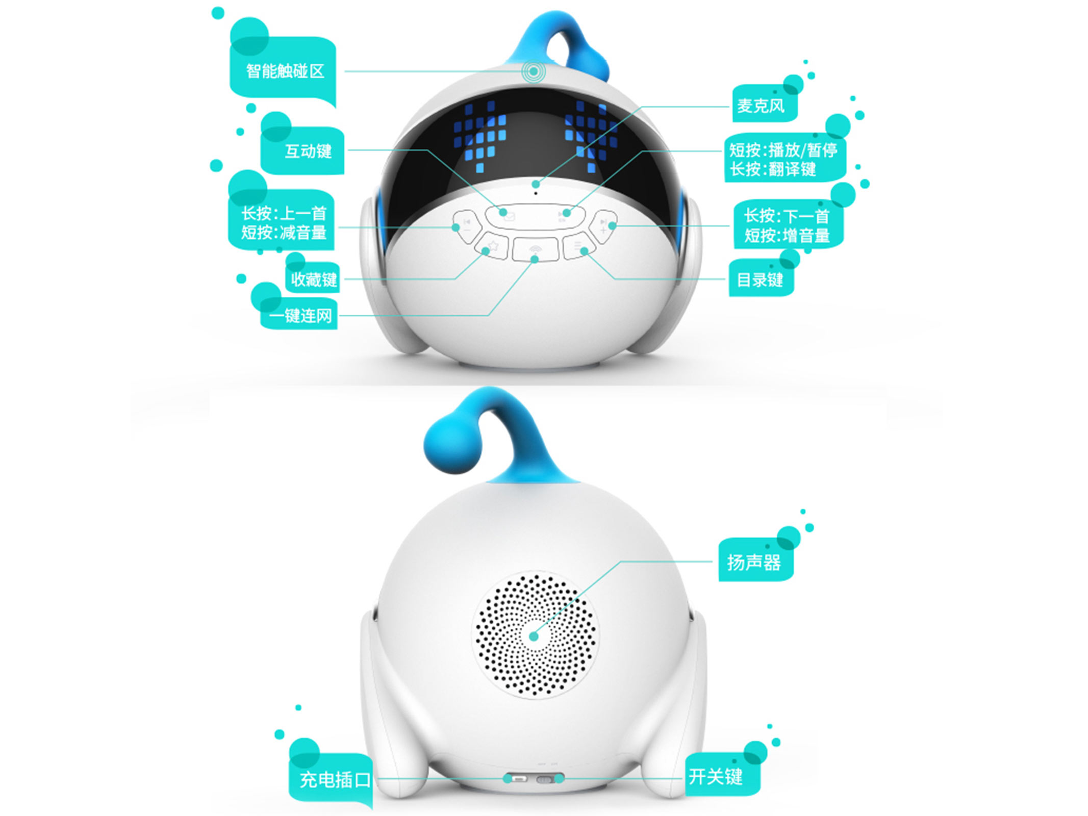 简介:1S单麦儿童机器人集多功能于一身:海量词库、百科全书、趣味互动、热门故事、英汉互译、幼教教育、古诗词对答、娱乐互动、微聊对话等,无论是对于孩子的学习还是课外扩展知识都是十分有帮助的,是孩子学习成长路上的好伙伴。
